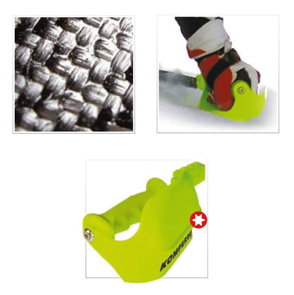 La nouvelle géométrie de cette protection bâton, avec ses 3 parties, est idéale pour prendre appuis tout en glissant sur la neige.